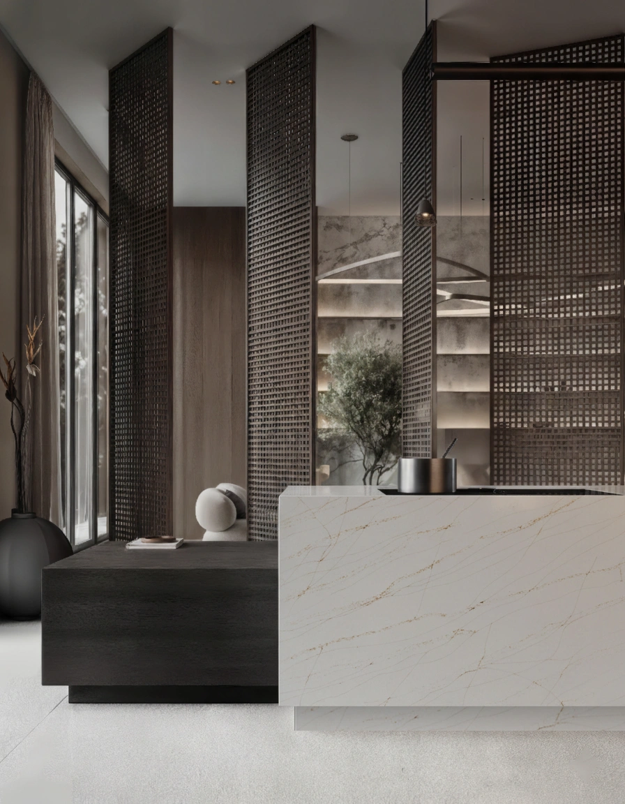 A design that reflects the delicate veining and neutral palettes inspired by the boundless sophistication of the cosmos.